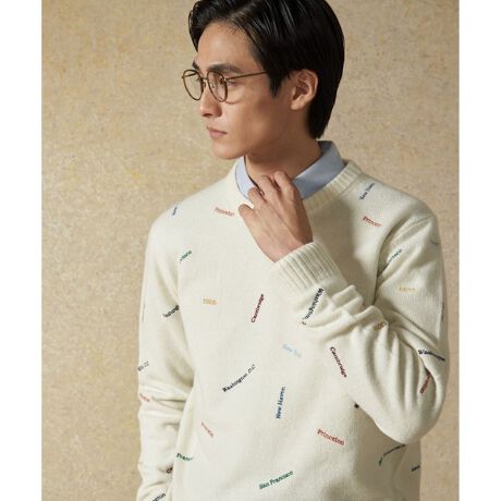 クルーネック型のセーターに当時のJ.PRESSの店舗があった地名が異なる色で刺繍されており、120年間ブランドが脈々と続いてきた事を象徴し、記念されデザインされたアニバーサリーアイテムです。ボディカラーも着合わせ易い色味を選定しております。