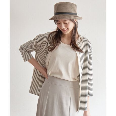 同じテレコ素材ですが、カーディガン細やかなボーダー柄。