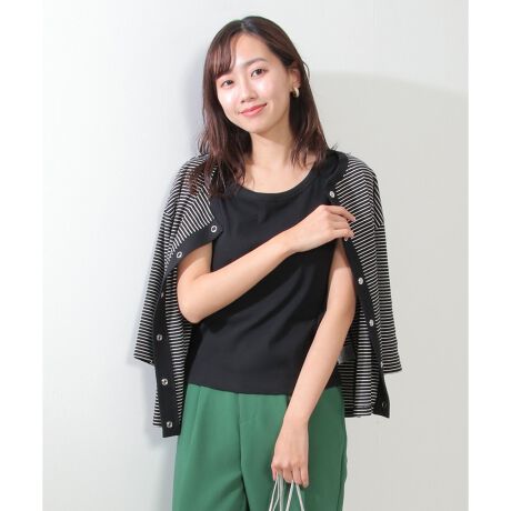 7分袖のカーディガン+シンプルなタンクトップの2点セット。