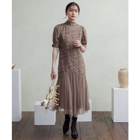 スカート裾部分はチュールのプリーツ切り替えデザインでひとクセプラス。