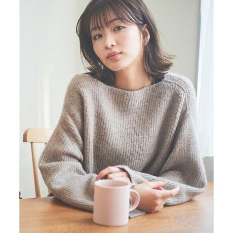 [WEB限定]<岡崎紗絵さんコラボ>ボートネックルーズニット