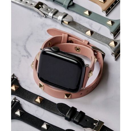 スタッズを添えた二重巻バンドでコーディネートのアクセントに最適。