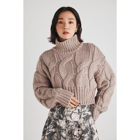 ざっくりとした編地が可愛いケーブルニットトップス。まるでハンドニットの様なローゲージの編地が非常に価値があり、また存在感も強い為、纏うだけで華やかに魅せてくれます。S/Mの2Size展開で、丈に大きな変化を付けて全く違った着こなしを楽しめる様にしました。S丈は今年らしいクロップド感を楽しめる短めの設定で、どんなボトムスでも相性良く着られるバランスに仕上げ、M丈は腰にのるくらいの抜け感のある着こなしが楽しめる雰囲気に仕上げました。どちらもバックテールになっているので、スタイルアップ効果も非常に良く着こなせる裾のラインもポイントです。上品な印象を与えるIVOY、大人っぽさ溢れるL/BRN、女性らしいPNK、モード感漂うBLKの4色展開です。
