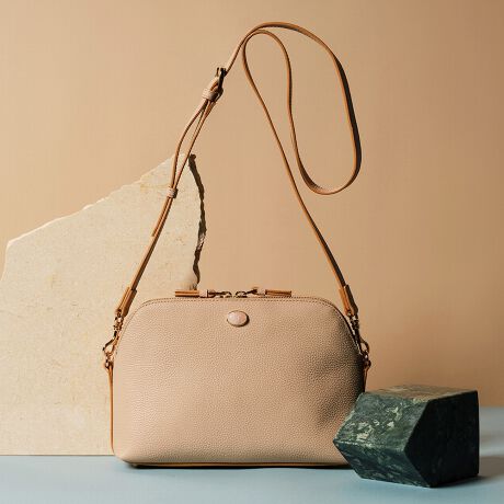 カーブラインが印象的なショルダーバッグは、コンパクトな見た目ながら長財布もしっかりと入るちょうどいいサイジング。ファスナーを開くと内装にも2つのポケットがあり、細々とした中身の仕分けを叶えます。ボディの前後もポケットになっていて、スマートフォンやハンカチなどさっと取り出したい荷物の収納に便利。