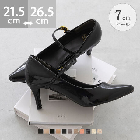 『シャープなヒールでスタイルも美しく魅せる イイ女ポインテッド ストラップ 7cmヒール パンプス』