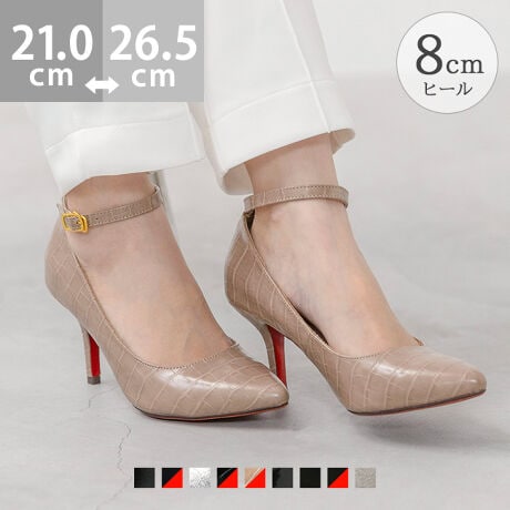 約8cmのハイヒールでスタイルアップ効果抜群のヒールパンプス。