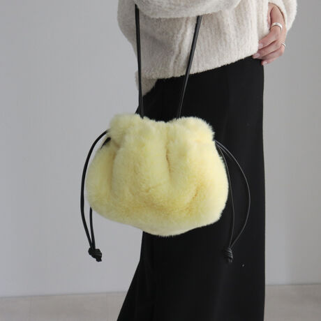 フレディ&グロスターのファー巾着ショルダーバッグ。