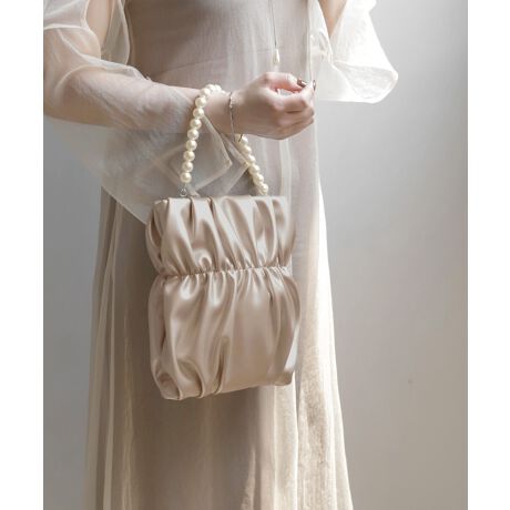 くしゅっとしたギャザーのデザインとパールのハンドルがアクセントになったパーティーバッグ。