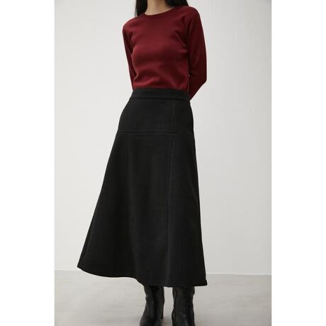 2022Autumn&Winter item・フェイクウールの生地ですが、起毛感と柔らかさがリアルに近い生地を使用。・今季トレンドのミディ丈スカートはウールライクな素材を使用し、モードでフォルムが印象的なシルエットに仕上げました。・一見シンプルなデザインですが、フロントの切り替えとファスナー回りの合皮バインダーでざいんでワンテクの効いたデザインに。・ミディ丈スカートにはロングブーツ合わせがおすすめで、一気にトレンドライクなスタイリングが完成します。<コーディネート>・タイトなトップスと合わせてレディライクなスタイルに。