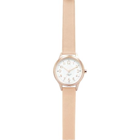 キレイめコーデにぴったり♪シンプルなデザインの腕時計「ジュビア」が新登場。女性らしい小ぶりなサイズ感。金具や文字盤、文字盤ケースにピンクゴールドカラーを取り入れ、上品な印象を演出♪うれしい10気圧防水(日常強化防水)仕様。洗顔や水仕事、雨で少し水がかかる程度なら大丈夫♪(※海やプール、温泉での使用は避けてください。)合皮素材のベルトにも防水加工済み。(※長時間濡れた状態が続くと革が劣化してしまうため、水がかかった時は速やかに拭き取ってください。)ベルトの長さは7段階にサイズ調節可能。日本製のムーブメントを使用。落ち着きのあるカラーバリエーション。ビジネスシーンにもおすすめ。