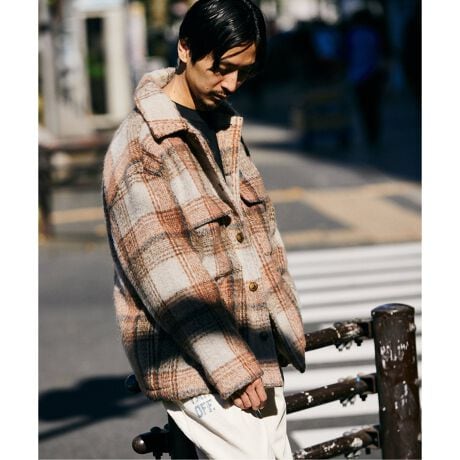 毛足のある、風合い豊かなチェック柄のシャツアウター。