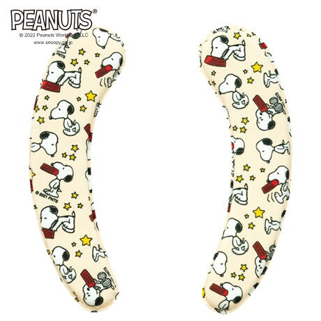 スヌーピーがちらばったデザイン、ふんわりやわらかなクッション便座シート(約12×38cm)。ミール