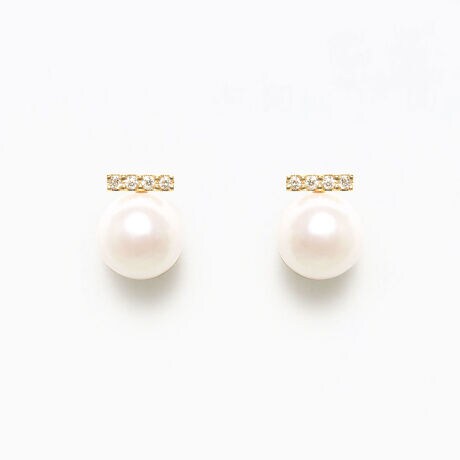 あこや真珠をイエローゴールドで包み込み、どこかクラシカルな雰囲気のピアス。