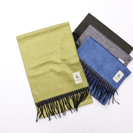 代名詞でもあるカシミヤにシルクをブレンドした美しい発色と光沢感が贅沢なダブルフェイスストール。