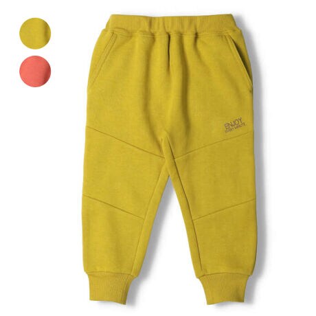 さりげないロゴのプリント入り。暗くなりがちな秋冬のコーディネートにもパッと目をひく差し色カラーのパンツ。裏起毛素材で暖か!裾リブデザインでスポーティーに着られる1枚。【アイテム】シンプル 無地 カジュアル お洒落 オシャレ かっこいい かわいい 可愛い 普段着 お外着 お外遊び着 デイリーウェア お出かけ着 ロング丈 長丈 長ズボン フル丈 ロングパンツ ボトムス 子ども こども 男児 男の子 ボーイズ キッズ ベビーサイズ トドラーサイズ 幼稚園 保育園 小学校 通園 通学 小学生 2022年秋冬物新作 丸高衣料 イエロー マスタード 黄色 レッド 赤色 ブラウン 茶色 クレセント
