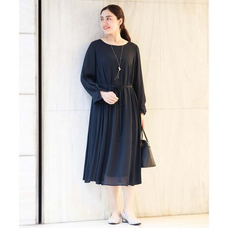 サイドプリーツが細見え効果がある軽やかなジョーゼットのワンピースです