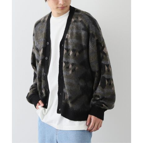 アメリカ先住民族のナバホ柄をイメージしたオリジナルグラフィック、EVIJO柄(エビホ)を編み上げたモヘアカーディガン。