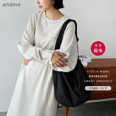 裏起毛 配色ステッチ 長袖 スウェット ワンピース