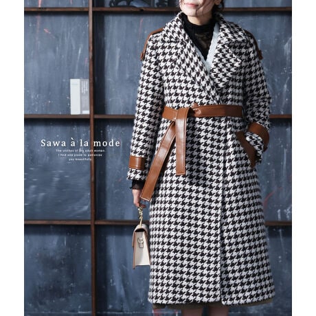 レザーの切替がお洒落な千鳥柄チェスターコート。千鳥柄とレザーの切替が大人のおしゃれを引き上げてくれます。綺麗なAラインのシルエットが羽織るだけで高見えな1枚です。モノトーンの落ち着きのあるデザインはデイリーに着まわせます。秋冬のおしゃれを格上げしてくれるエレガントなコートです。