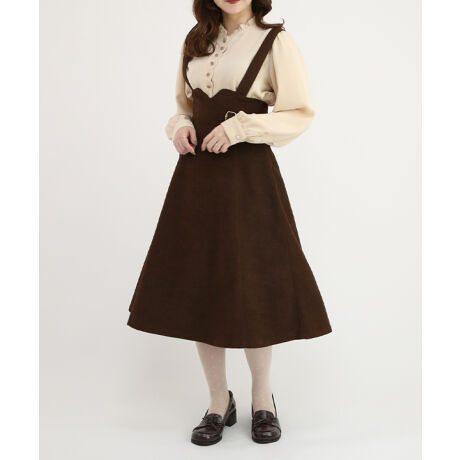 起毛感のある素材とコルセットのようなハイウエストのデザインがレトロムードを盛り上げます。
