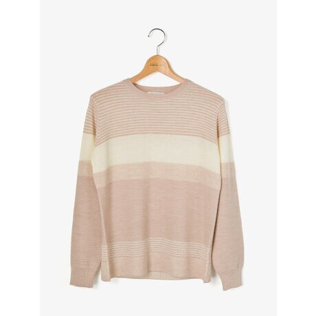 地柄と配色を組み合わせたデザイン性の高いプルオーバーニット。ブルーとピンクのエレメントらしい優しい配色で、冬のコーディネートもほんのり明るい印象になります。