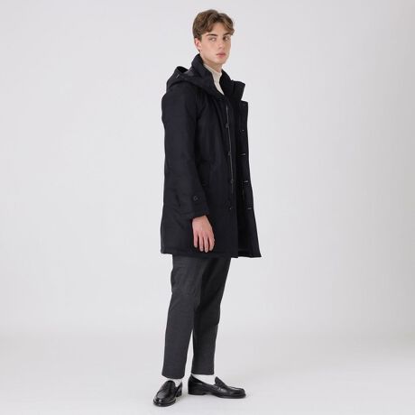ダウンステッチを外に見せない仕様にする事で洗練された雰囲気に仕上げました。ジャケットの上から羽織るコートのようにも使用出来る為シーンを選ばない一着です。シンプルでベーシックなデザインではありますが、同色系のチェック柄が生地に陰影を付けて他には無い唯一無二な存在感のダウンに仕上がっています。