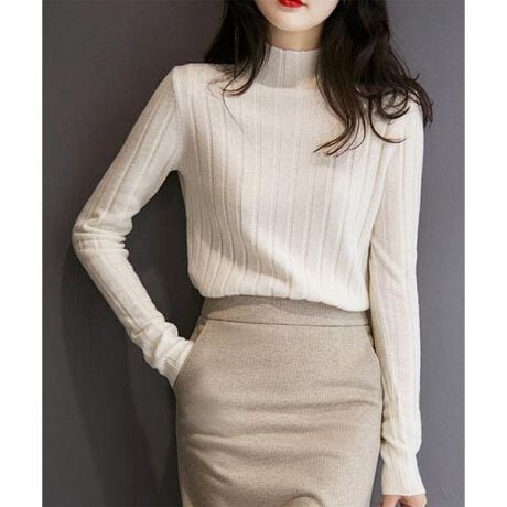 ・幅広のリブラインが装いを上品かつスタイリッシュに。伸縮性があり程よく体のラインにフィットします。