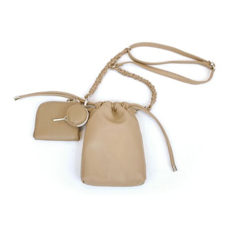【サイズ】(本体)横:15 高さ:21 マチ:3 (丸ポーチ)横:5 高さ:5 マチ:2 (財布)横:11 高さ:10 マチ:2 ショルダー:115