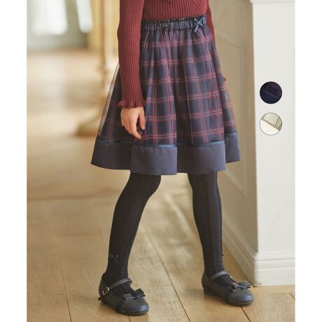 ■デザインクラシックな印象のチェック柄をチュールにプリントしたボリューム感のあるスカートです。