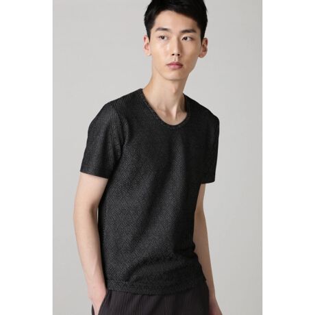 ダブルメッシュジャージーのクルーネック半袖カットソー。繊細な幾何学模様柄を感じられる一着。