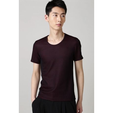 ダブルメッシュジャージーのクルーネック半袖カットソー。繊細な幾何学模様柄を感じられる一着。