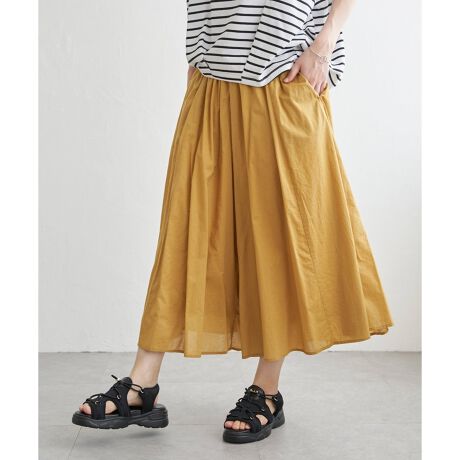 たっぷりギャザーが入った、スカートのようなワイドパンツです。