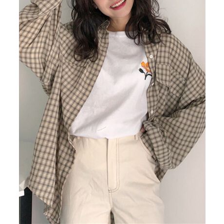 ドロップショルダーチェックオーバーシャツ