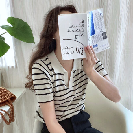 ボーダーポロ半袖ニット