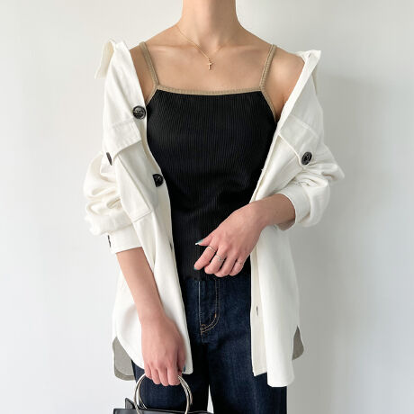 サイズ:M-L(約cm)<br />M:着丈47 身幅39<br />L: 着丈49 身幅41<br /><br />素材<br />ポリエステル77%,コットン20%,ポリウレタン3%<br /><br />仕様<br />透け感:あり<br />裏地:なし<br />伸縮性:あり<br />■原産国<br />中国<br /><br />着用モデル: 身長154cm 体重42kg Mサイズ着用<br />※サイズ感を画像でご確認の上、ご検討ください。