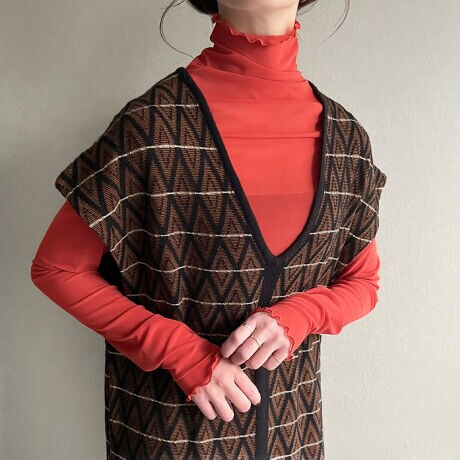 配色ジャガードニットベストワンピース