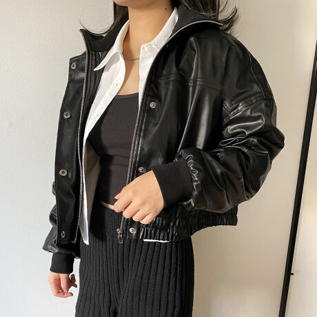 callautia ハイネックレザーショートブルゾン