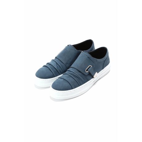フロントのドレープデザインと先金付けのベルトが特徴的なローカットスニーカー。