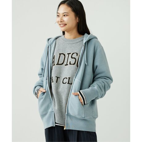 リバースウィーブのジップパーカーは、トップスとしては勿論アウターのインナー使いで差し色としても映える一着です。