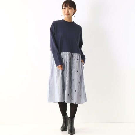 ロンストスポットリング刺繍×天竺ワンピース