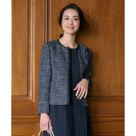 ファンシーツイード ノーカラー ジャケット