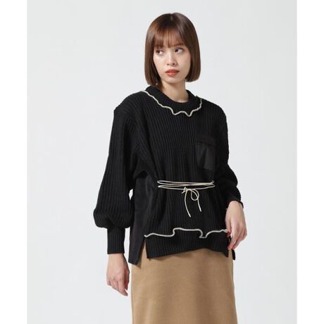 脇から袖底にかけてコットンベロアを挟んでボリュームを出したパフスリーブのリメイクセーターです。フロントのリボンは緩めに結んでアクセントに。ガーリーながら女性らしいデザインです。rehersall/リハーズオール【Re】【Hers】【All】彼女のすべてについてミリタリーウェア・ワークウェア・ビンテージアイテムの素材そのものが持つ『機能美』と、時間の経過によって醸し出される繊細さ、温かみをハンドメイドで表現し、新たな解釈でスタイルを提案する日本のリメイクブランドです。