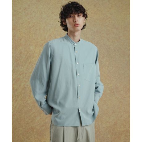リラックス ドレープ レーヨンスエード とろみバンドカラーシャツ/イージーケア/3シーズン着用可能/