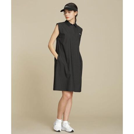 ゴルフのプレーもお洒落も楽しみたい女性に向けたノースリーブワンピース。首元をすっきりと演出する横広のクルーネックに、体型カバーが叶うフレンチスリーブですっきりと仕上げました。センターバックをメッシュで切替えた涼しい着心地で、真夏の暑い時期にも重宝するひと品です。