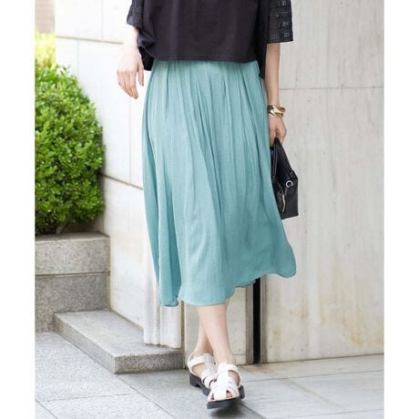 【イージーケア】サテンギャザーフレアスカート
