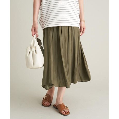 細かいギャザーが脚の形を拾いにくく、体型カバーも◎