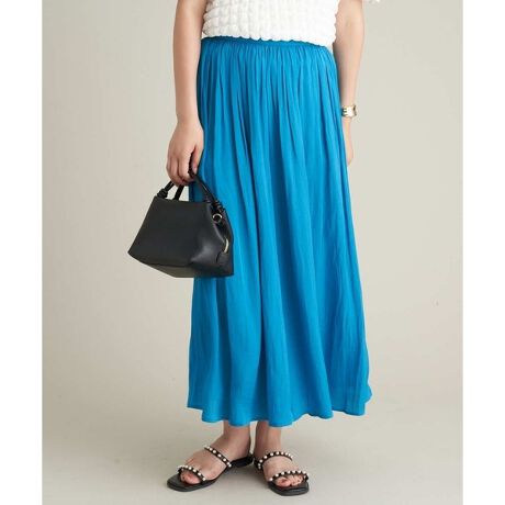 細かいギャザーが脚の形を拾いにくく、体型カバーも◎