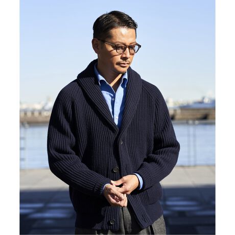 フランス・イタリアの冒険映画をモチーフに制作したニットカーディガン。