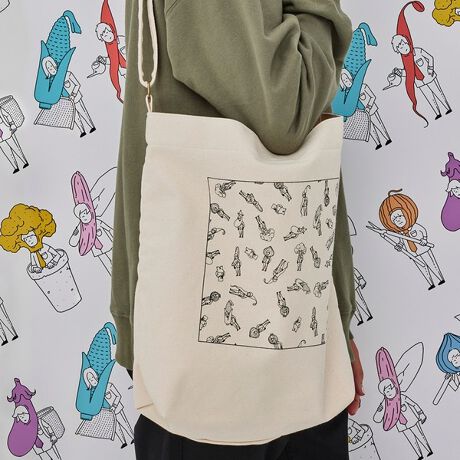 畑メンバー7人のキャラクターモチーフイラストをプリントしたトートバック