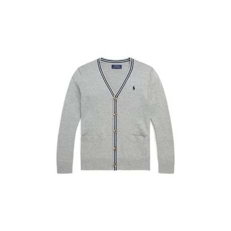 ストライプ入りのトリムが学生風のひねりを加える、薄手のコームドコットン仕立てのカーディガン。Ralph Laurenは、コットン栽培を国際的に改善するためにBetter Cottonと連携。Better Cottonは農業従事者に対し、水の効果的な利用、土壌と自然生息地の健康に対する配慮、有害性の高い化学物質の利用の削減、適正な労働原則の実施について、トレーニングを提供。・本商品は物質収支式に則って材料を調達しているため、すべての製品にBetter Cottonが含まれない可能性があります。・左胸にシグネチャーのポニー刺繍・Vネックライン / ボタン付き前立て / ネックラインと前立てにストライプのトリム・長袖、リブニットのカフス / フロントウエストに箱ポケット2つ・リブニットの裾【原産国】 中国・本体:綿100%装飾部分を除く